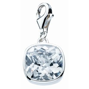 Dew Sterling Silver beautiful white cubic zirconia cushion stone charm is a perfect statement for anyone who loves sterling silver jewellery. Stylish and eye catching they make a wonderful gift