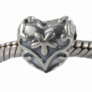 Quality Solid Sterling Silver Patterned Heart Charm. Hallmarked 925. Size 9.4x10.3 mm - Hole 4.5 mm - Weight 2.00 grams - will fit Pandora, Biagi, Trollbeads, Chamilia and all similar 3mm jewellery. DESPATCHED 1ST CLASS SAME OR NEXT WORKINF DAY
