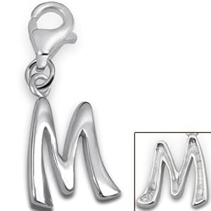 1.1x1.3cm. Type - Charms with Lobster Material - 925 sterling Silver Approx. Weight - 1.6 G Finishing - Sterling silver+E-coat Description - Initial M charm with lobster